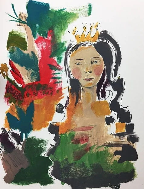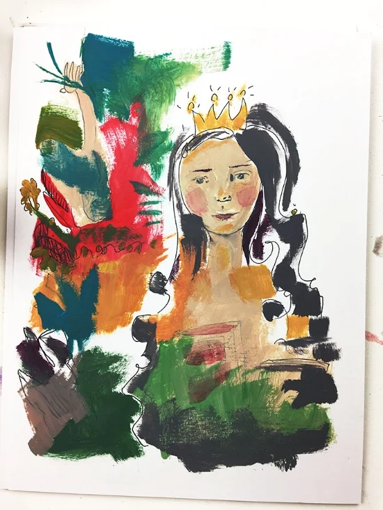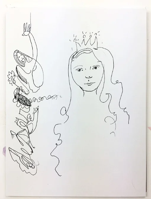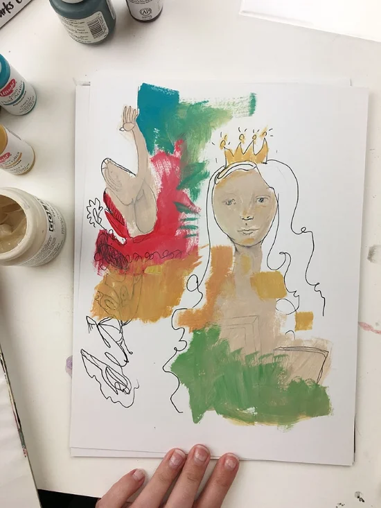 My crown needed a head, I added a misspelled word (oops) so I turned it into doodles and lines.