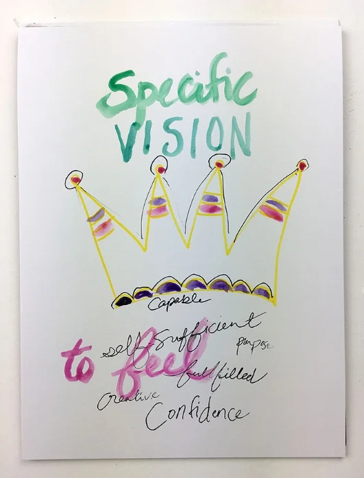 Create a symbol that would represents the big goal. (I just picked a simple image that came to mind quickly.) Don’t fuss over what it is. The faster it pops in your head the easier it will be to picture that symbol and the underlying meaning when you are feeling lost and not sure what you are working towards. Mine was a crown. It summed up how I’d feel and also how rare it felt to achieve this goal. (something to work on for me… more about working on these thoughts that come up in newsletters to come)